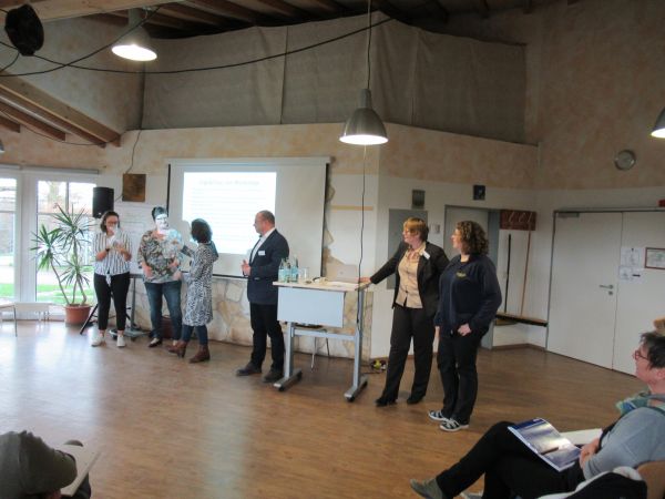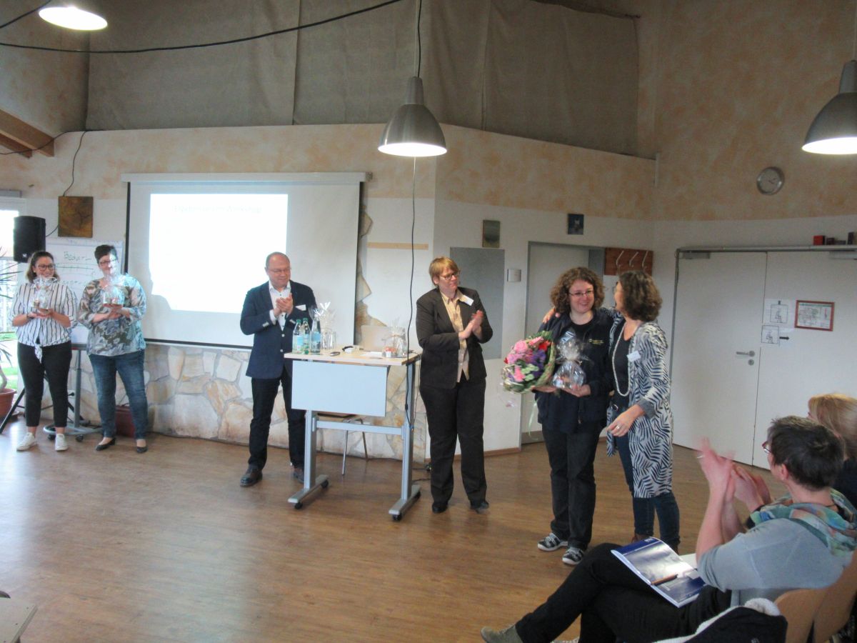 Zum Abschluss fassten im Plenum Teilnehmer oder Referenten die Workshops noch einmal zusammen. Die liebevoll gestalteten Geschenkpäckchen mit Produkten aus dem Atelier wurden als Dankeschön für das Engagement der Referenten überreicht und Frau Röbke als Organisatorin des Tages erhielt noch einen Blumenstrauß für ihren Einsatz.