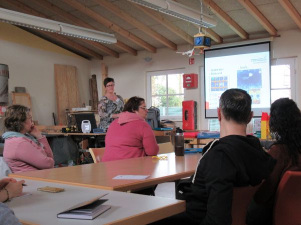 Frau Wolf startete mit einem, wie immer kurzweiligen und einprägsamen Vortrag über das grundsätzliche Wissen zum Thema Autismus. Durch Selbsterfahrungsübungen konnten die Teilnehmer erfahren, wie sich das Lernen von Menschen mit Autismus von dem der neurotypischen Menschen unterscheidet. Auch zum Thema Körperwahrnehmung hatte sie Materialen dabei mit denen die Teilnehmer einen kurzen Einblick in die Möglichkeiten der Anwendung von Körperbändern erhielten.