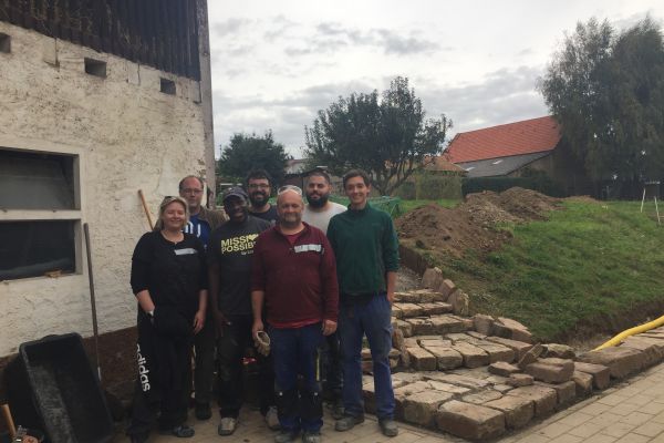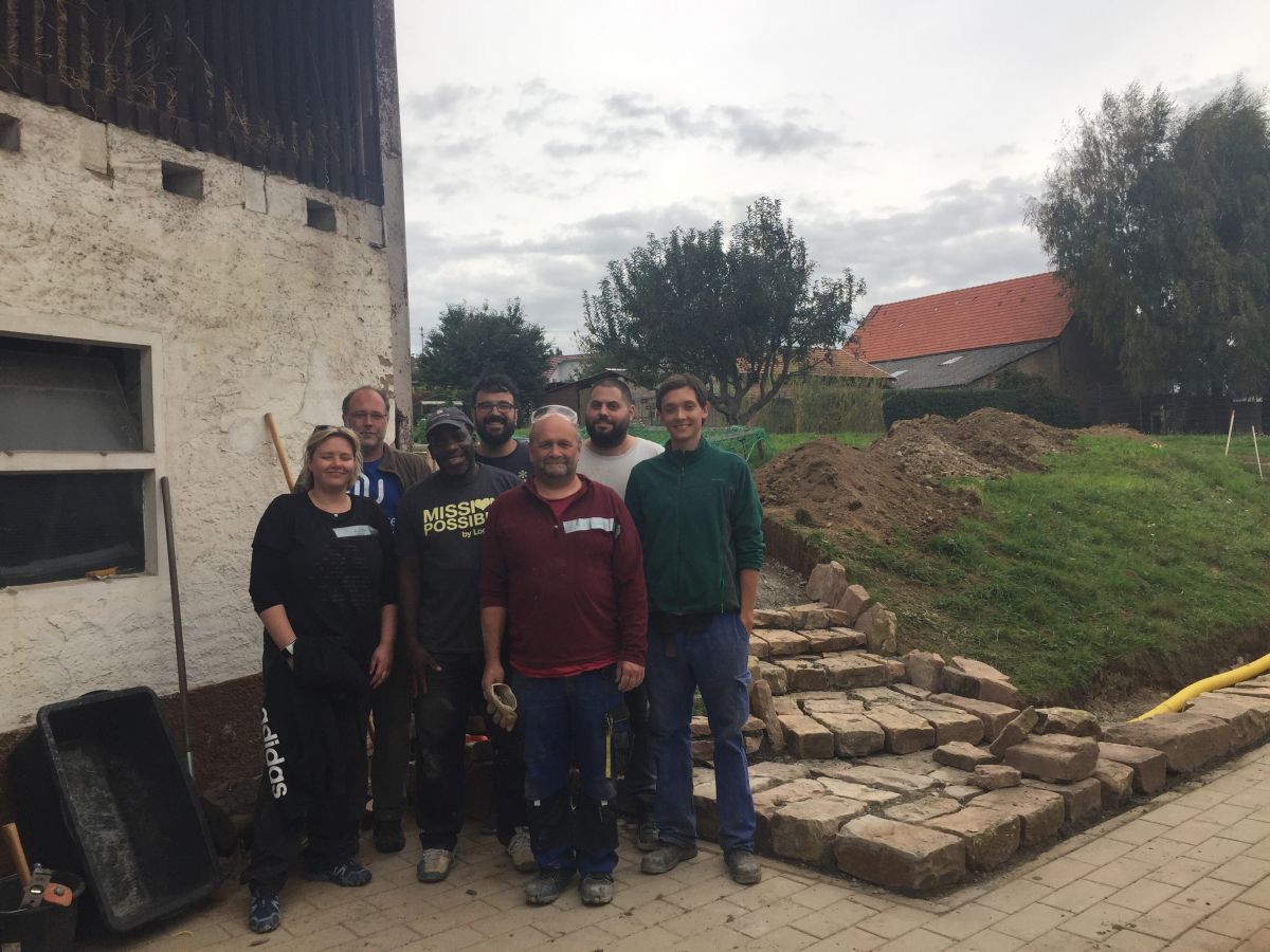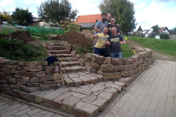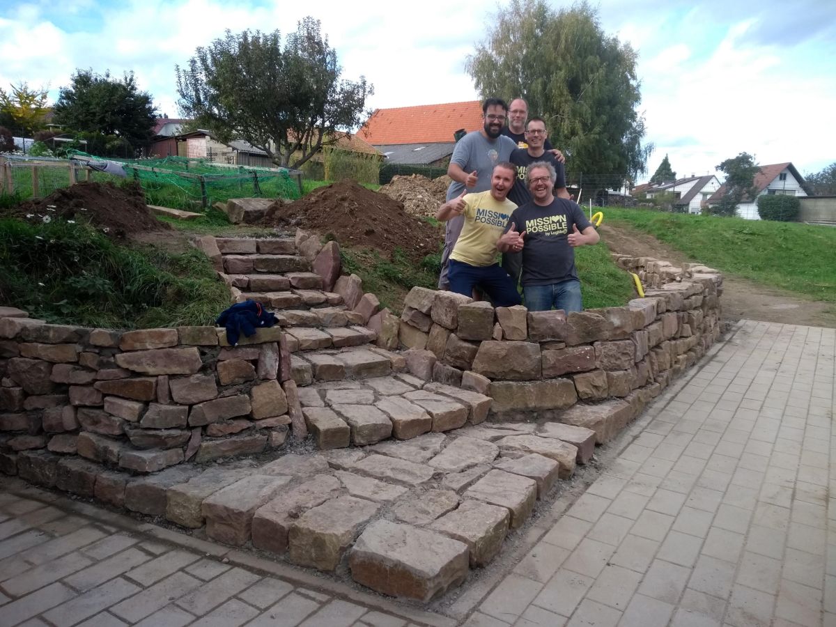 In einem sozialen Projekt der Firma „Log Me In“ erschufen die Mitarbeiter*innen der Firma gemeinsam mit unserem Haustechniker Wolfgang Neber – Roth in nur vier Tagen eine Natursteinmauer, welche uns ab dem nächsten Jahr als geschütztes Hochbeet dienen wird inklusive einer Treppe um den Klient*innen das selbständige erreichen unseres Gartengeländes besser zu ermöglichen.