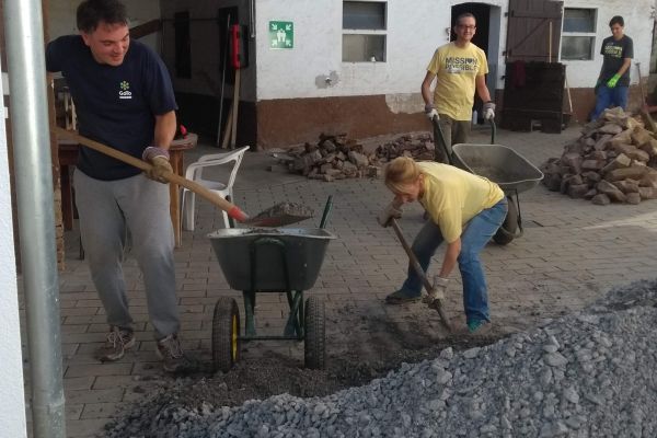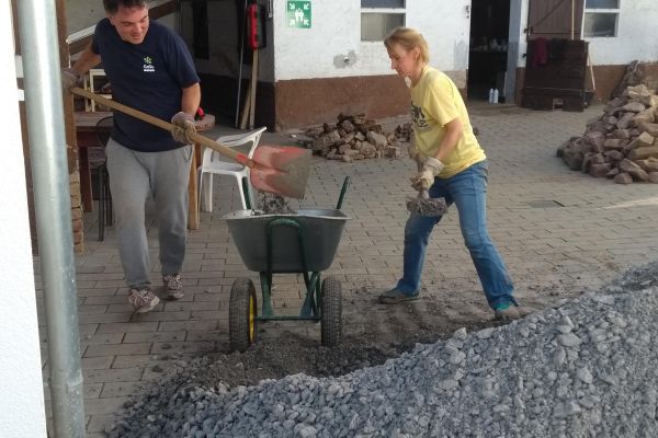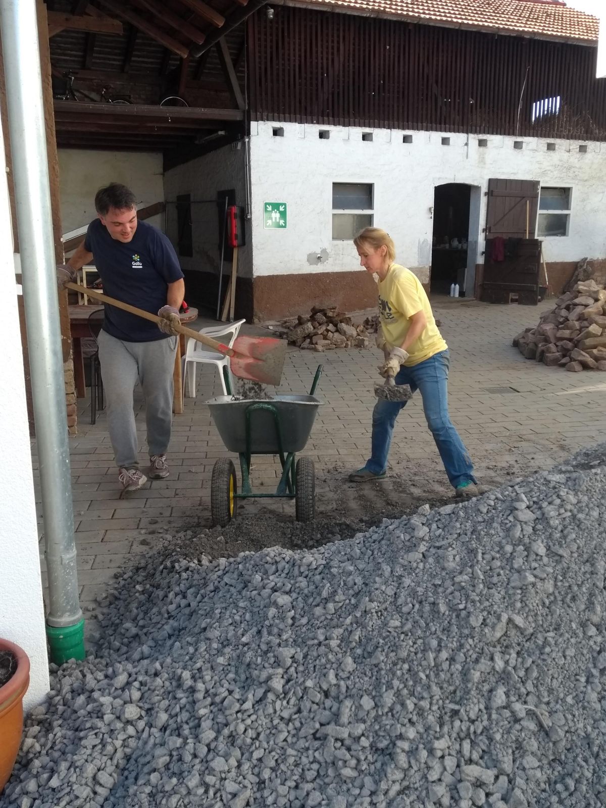 Auch die Klient*innen halfen gemeinsam mit den Mitarbeiter*innen aus dem Atelier tatkräftig mit, als es um das Steine schleppen und sortieren ging.