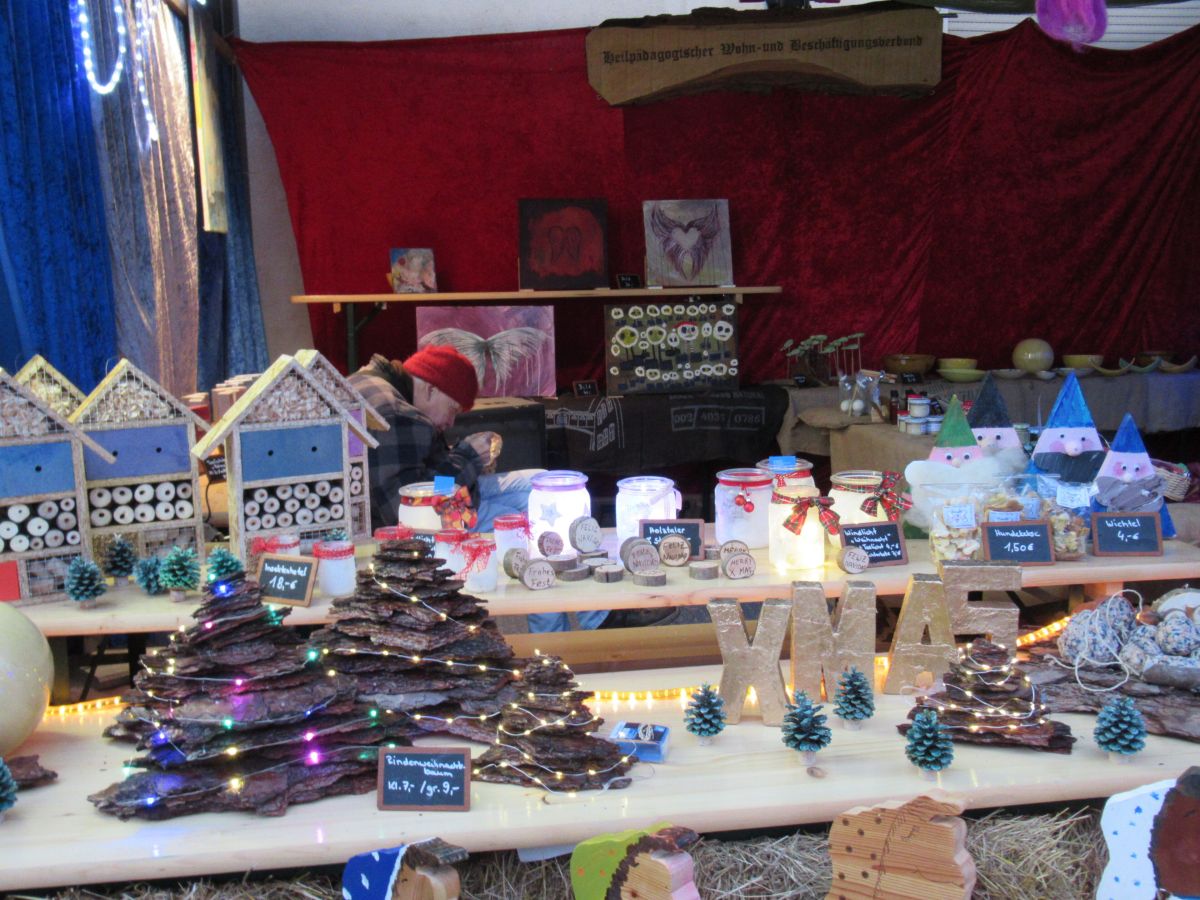 Auf dem Weihnachtsmarkt am zweiten Adventswochenende in Oberhausen erfreuten sich die Angebote aus unseren Ateliers wieder großer Beliebtheit. Dank der guten Besucherzahlen und des Interesses der Bevölkerung konnten wir einige unserer selbst hergestellten Produkte verkaufen und freuen uns über die positiven Reaktionen auf unsere Arbeit.